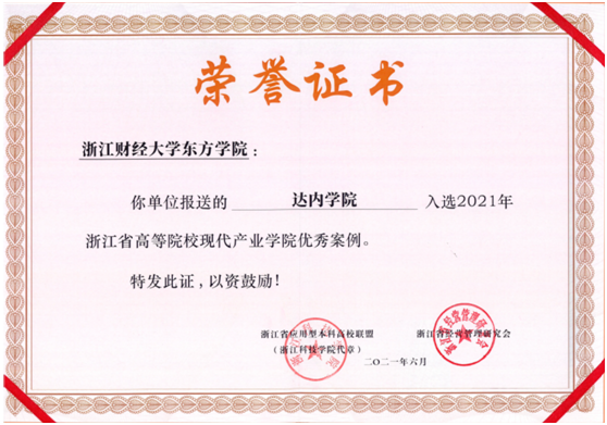 6月4日,由浙江省经营管理研究会、浙江省应用型本科高校联盟、浙江省数字化制造产教融合联盟和浙江省家政服务业产教融合联盟主办的“现代产业学院建设与发展高峰论坛”在浙江树人学院落下帷幕,此次会议上,我院“达内学院”入选2021年浙江省现代产业学院优秀案例。
