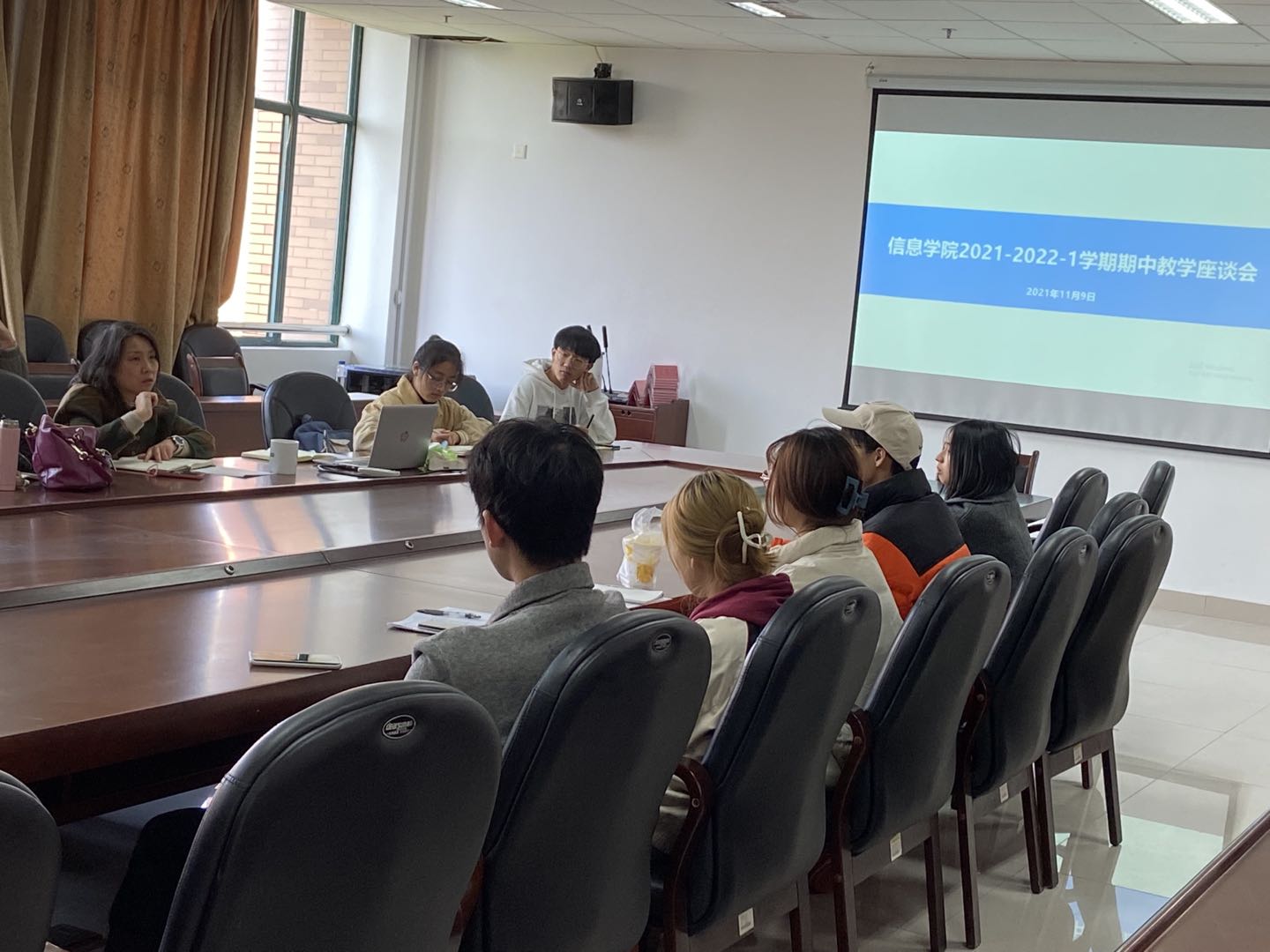11月10日下午,信息学院在2号实验楼412会议室召开2020-2021学年第2学期期中教学师生座谈会。信息学院教学副院长应可珍老师、教学秘书、辅导员老师、督导老师以及各级学生代表共同参加了本次会议。会议由应可珍副院长主持。