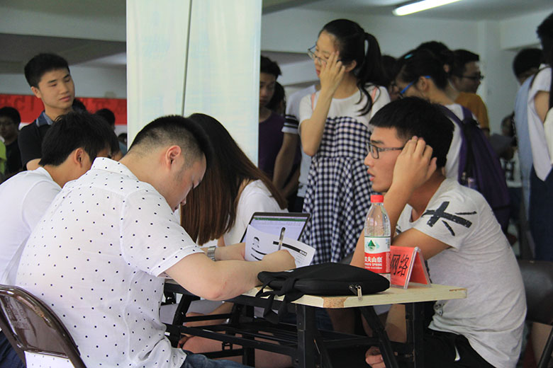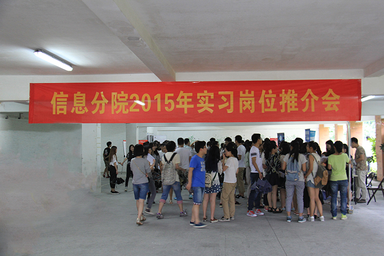 6月16日下午,1号实验楼,场外大雨磅礴,场内热情高涨。信息分院2015年实习岗位推介会如期举行,包括浙江核新同花顺在内的多家企业虚位以待,吸引了我院300多名学子前来应聘。