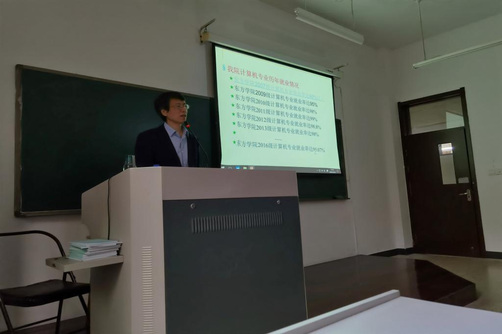 首先,成院长介绍了信息学院及各专业发展情况,与我们分享了世界经济发展和信息技术的关系。成院长说到信息技术是引领科技创新驱动社会转型发展的核心力量是国家实现弯道超车的重要利器,信息技术发展在国家发展占首要地位,不仅如此,成院长还分享了疫情期间信息技术在各方面的应用。同时,还强调了信息学院强大的师资力量的支持,以及专业发展在就业行业的良好趋势,比如软件开发,财务大数据管理,数据挖掘与分析,互联网金融等,都让让同学们对未来发展充满了憧憬。
