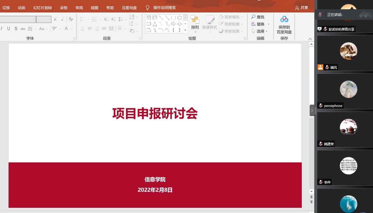 2月8日晚,我院成功举办了2022年度国社科、国自科项目申报研讨会。学院计划申报本轮课题的老师、学院领导、院内专家及各系骨干教师参加了会议。会议为线上形式,由副院长彭武珍主持。