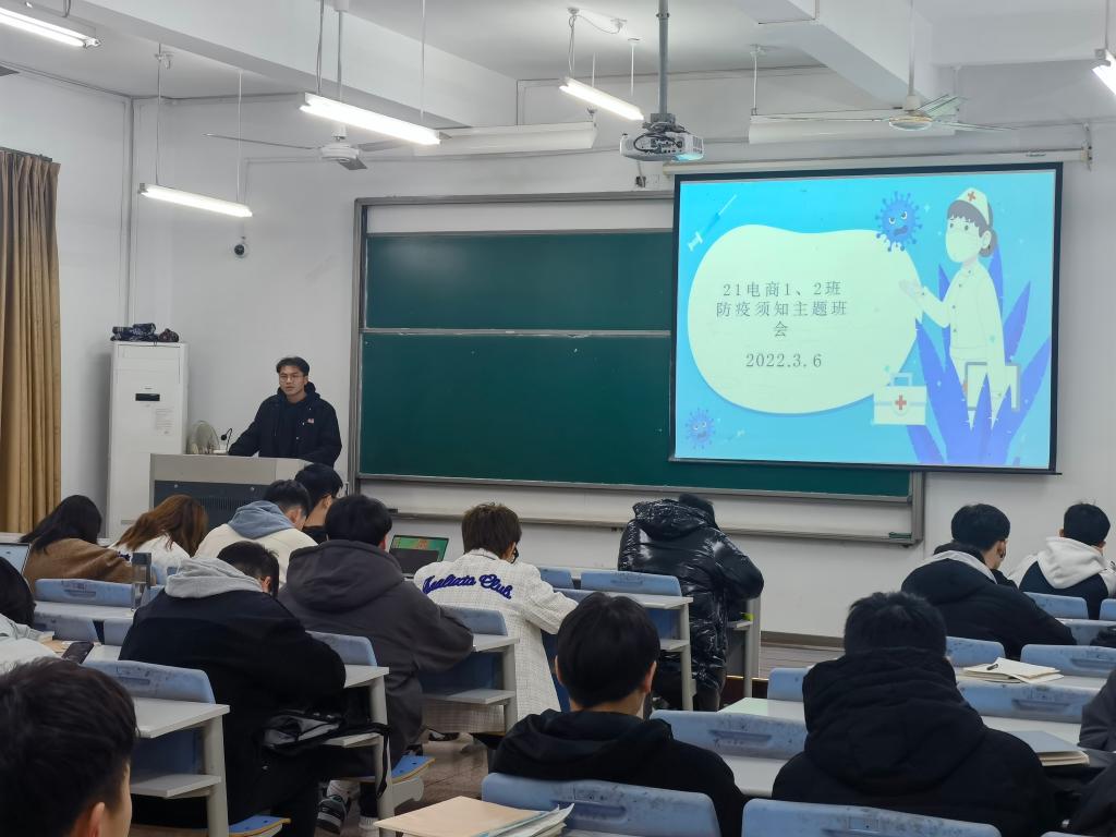 2022年2月28日至3月24日,伟德国际victor1946信息学院各年级各班开展了“科学防疫,新学期新规划”为主题的系列班会活动。各年级辅导员根据科学防疫、爱国主义教育、法制教育、防诈宣传、学风建设、春季学生心理健康疏导、就业指导、党史教育等有关方面,结合各年级情况,展开主题班会。