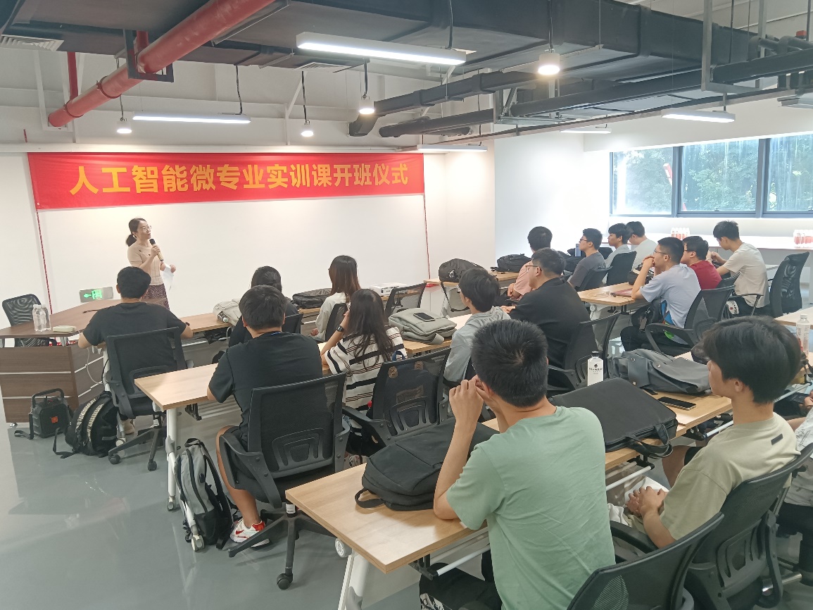 仪式上,郝瑞吉总经理首先对我院师生表示了热烈的欢迎,并简要介绍了人工智能产业学院、园区及授课老师的相关情况,同时对参加本次实训的同学提出了期望。