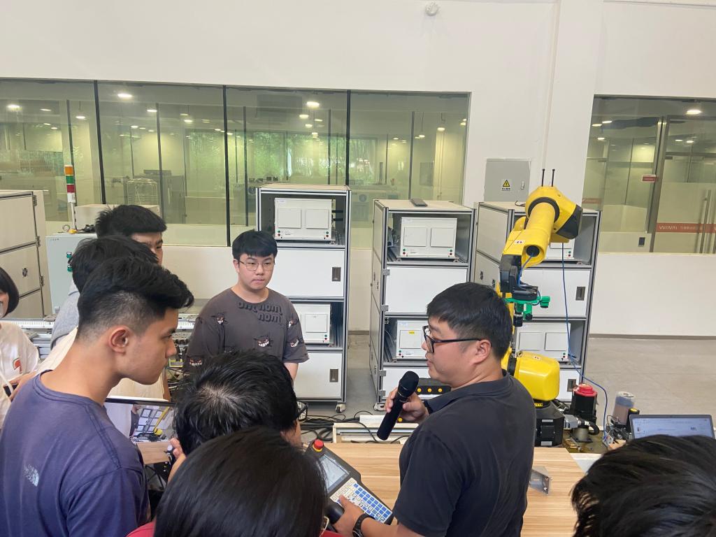 李立贤业师专注于工业机器人的应用。他详细讲解了工业机器人的操作原理和编程技巧,并通过实际案例演示了如何通过控制机器人实现马克笔和毛笔的书写。通过这些实践操作,学生们不仅掌握了工业机器人的操作技能,还深刻认识到了工业机器人在现代制造业中的重要作用,以及工业机器人在生产线上提高效率和质量的巨大潜力。