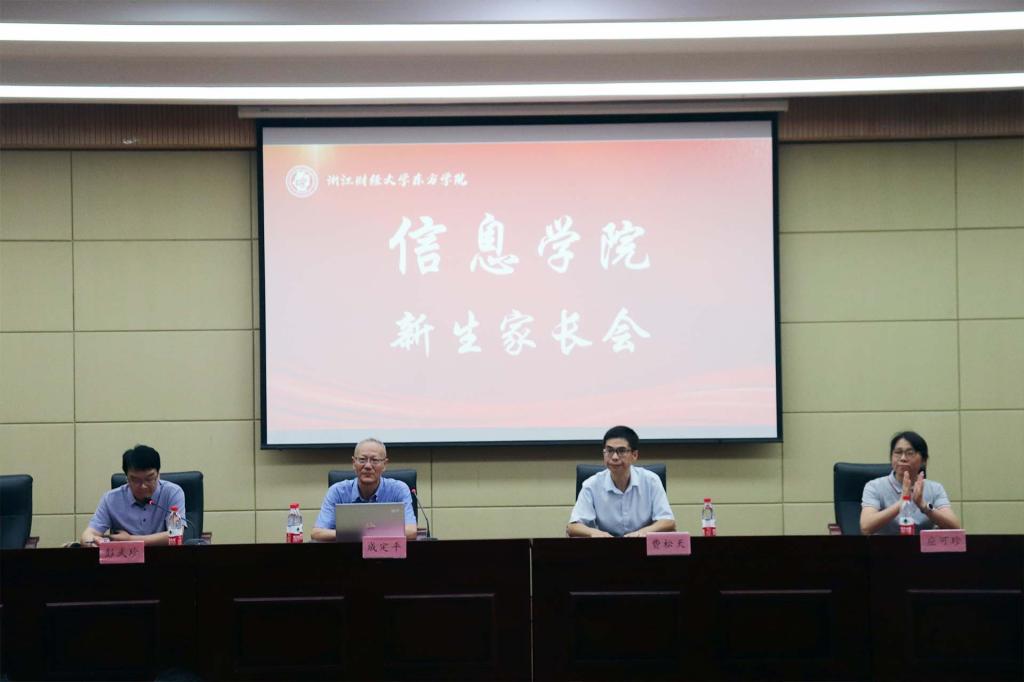 2023年9月10日下午两点十分,我院于学术中心二号报告厅召开了信息学院新生家长会,信息学院院长成定平、党总支书记费松天、副院长应可珍出席会议,电子商务专业老师袁毅贤、计算机科学与技术专业老师陈建国、信息管理与信息系统专业老师赵培培、应用统计学专业老师洪倩茹、数据科学与大数据技术专业老师徐朝晖、2023级新生辅导员李秋晴、刘宝月、教学秘书林雅晨及2023级新生家长参会。会议由信息学院副院长彭武珍主持。