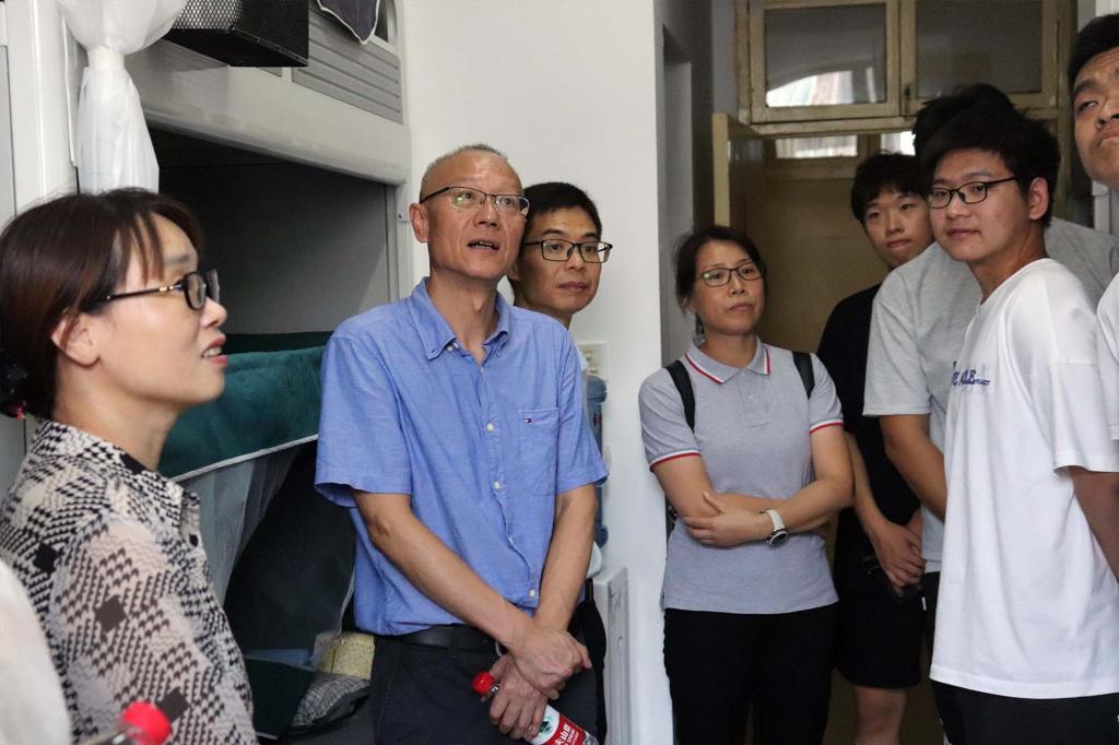 学院领导们首先来到了4寝,刚跨进门,领导们便亲切的与志愿者和楼道中的新生打起了招呼,随后从4楼向下走访各个寝室。林香娥老师和成定平老师以及其他老师询问了同学们住宿情况以及学习环境等。同学们纷纷畅所欲言,讲述自己对学校很满意,对新生活很期待。老师们对四年的大学生活会遇到的问题,都一一给出了解决方法。走访途中,老师也与同学们唠唠家常,了解有同学来自外省,路途奔波,仍无法阻挡其对大学的向往。