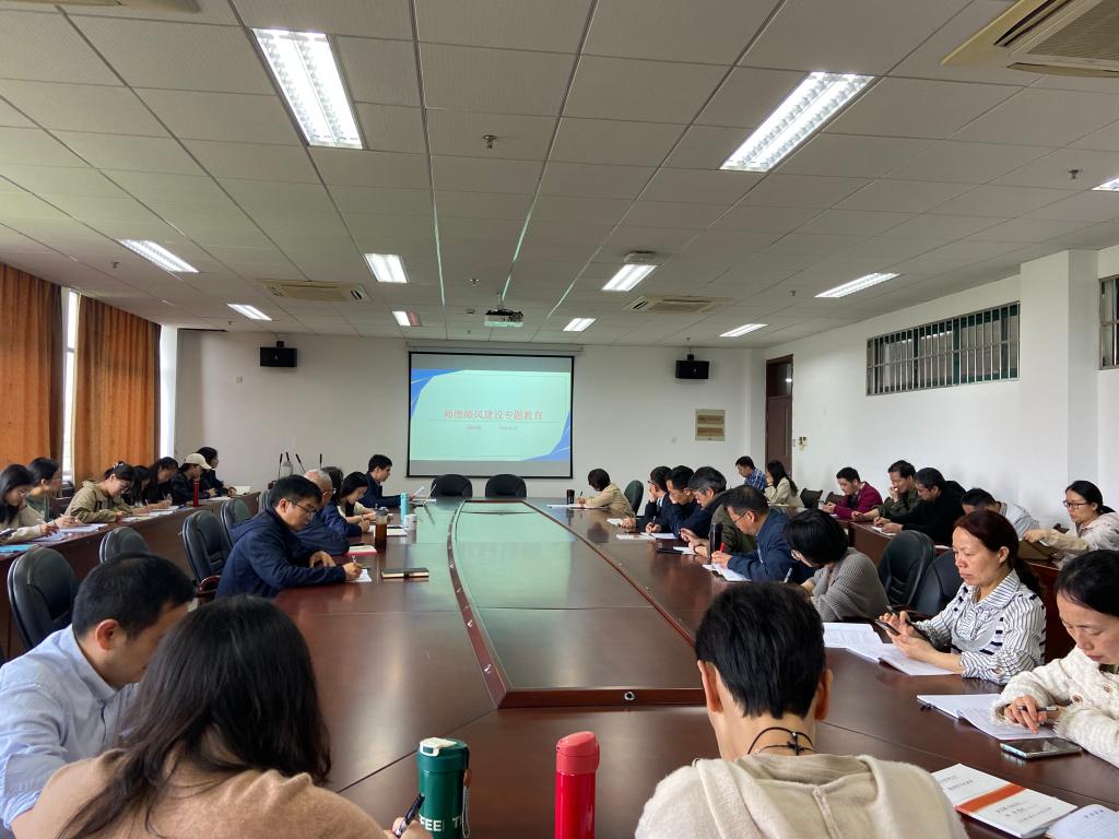 为了深入贯彻习近平新时代中国特色社会主义思想,切实遵循习近平总书记关于教育的重要论述与指示批示精神,着力强化新时代背景下的师德师风建设,伟德国际1946于2024年4月23日召开了师德师风专题教育学习会。全院教职工全员参与,会议在学院党总支书记费松天的主持下有序进行。