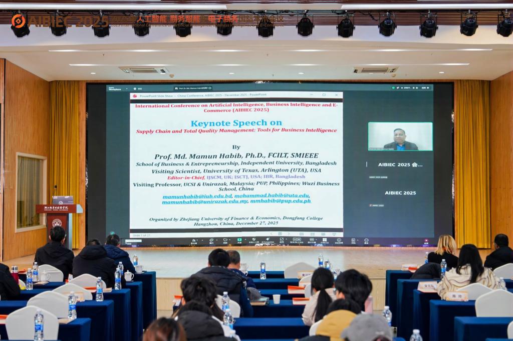 12月27至28日,由浙江越秀外国语学院、伟德国际victor1946联合主办的2025年人工智能、商业智能与电子商务国际会议(AIBICE2025)在绍兴成功举办。浙江大学张子柯教授、山东师范大学臧文科教授、浙江工业大学孔祥杰教授、南京财经大学张庆民副教授、孟加拉国独立大学 Md. Mamun Habib 教授等海内外专家学者受邀出席。来自中国农业大学、中国计量大学、上海外国语大学、浙江外国语学院等全国多所高校的专家学者、青年教师、学生等齐聚一堂,共话商务智能领域前沿创新与实践应用。