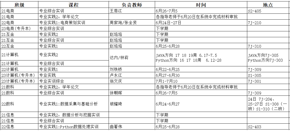 2023-2024-2学期短学期安排如下,若未专门说明各班上课时间均为上午8:30,下午1:30,期间作息由授课老师负责,如有问题请及时反馈。