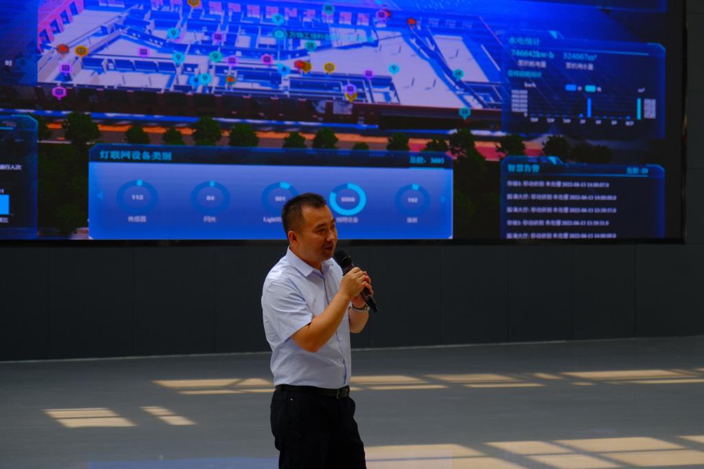 在万物工场工作人员的带领下,首先来到的是园区的路演中心,在共同观看视频宣传片之后,浙江万物工场智能科技有限公司总经理郝瑞吉为大家介绍了万物工场园区的具体情况。万物工场暨工业互联研发制造基地,位于经济开发区施带路20号,紧临浙大国际校区、鹃湖科技城,地理区块优越。园区总投资近30亿元,占地152亩,总建筑面积约16万平方米。在园区建设上,共分为两期建设,一期打造成集科创中心、应用展厅、测试中心、中试线于一体的AI秀场。由1栋科创中心、4栋独栋厂房、9栋多层厂房办公楼组成,园区入驻企业/团队,可享受“从设计到制造,8分钟步行”的闭环生态。二期打造成集人才公寓、商服配套于一体的产业公园。将通过建设景观级的园区环境,触手可享的园区配套、高大上的人才居住条件,筑造有活力、有温度的园区,让入园企业、人才尽情享受到智慧园区的繁华与便利。