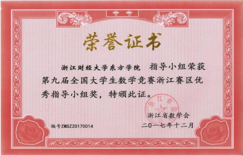 近日,第九届全国大学生数学竞赛(浙江赛区)的成绩揭晓,我院共有11名同学获奖,其中一等奖1项,二等奖2项,三等奖8项。同时获得浙江赛区优秀指导小组奖,这是我院自参与该项竞赛以来首次获得该奖项。