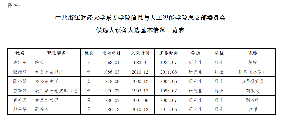 附件:中共伟德国际victor1946信息与人工智能学院总支部委员会候选人预备人选基本情况一览表