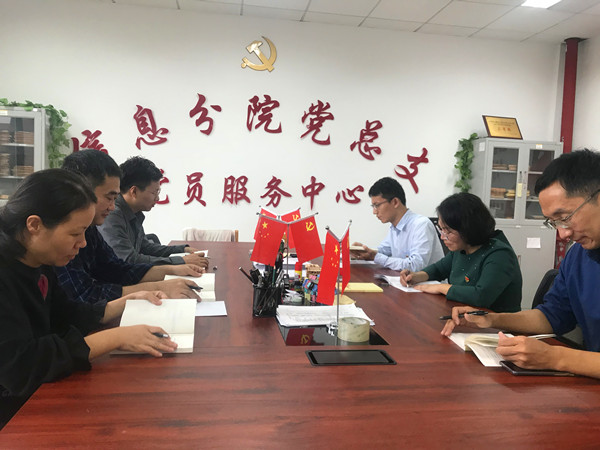 为深入开展“不忘初心、牢记使命”主题教育,庆祝新中国成立70周年,守初心、担使命、找差距、抓落实,大力弘扬爱国主义精神,信息分院信息管理系教工党支部于10月11日下午在分院党员之家开展“礼赞新中国·奋斗新时代”主题党日活动。支部全体党员参加会议,会议由支部书记赵培培主持。