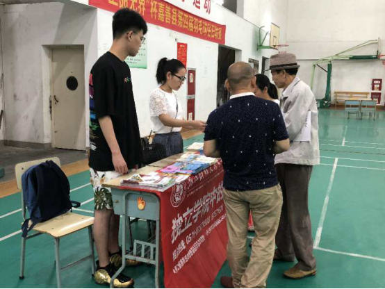此次招生咨询工作在嘉善高级中学室内运动馆举办,来自省内和部分省外高校齐聚一堂,方便了考生和高校一对一交流咨询,上午八点左右,已有家长带领学生到场馆内咨询,我院王硕老师和学生朱宇凡耐心细致地对考生和家长提出的疑问和其他问题进行了一一解答,现场咨询氛围浓厚,热闹非凡。
